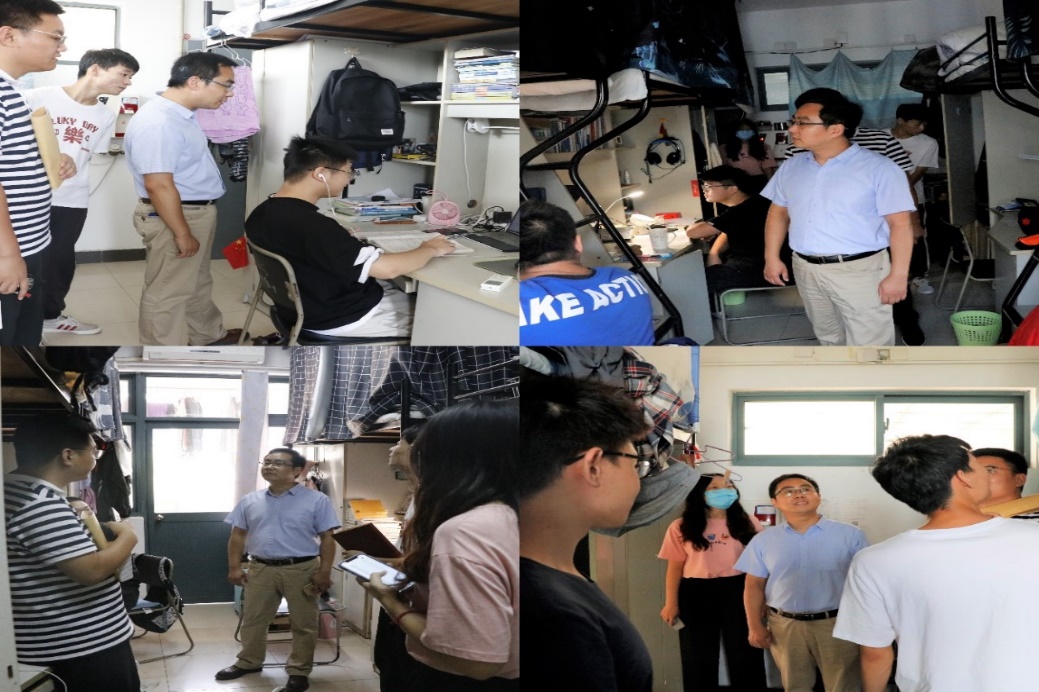 周公博副院长及王虎副书记带队对研究生宿舍和本科生宿舍进行检查,检查工作主要针对宿舍卫生、用电安全、火灾隐患及门窗防护等方面。通过检查发现,大部分宿舍能够遵守学校宿舍安全管理规定,保持宿舍卫生整洁,但个别宿舍存在桌面杂乱、垃圾堆放等问题,检查老师们对其逐一进行了安全卫生提醒。