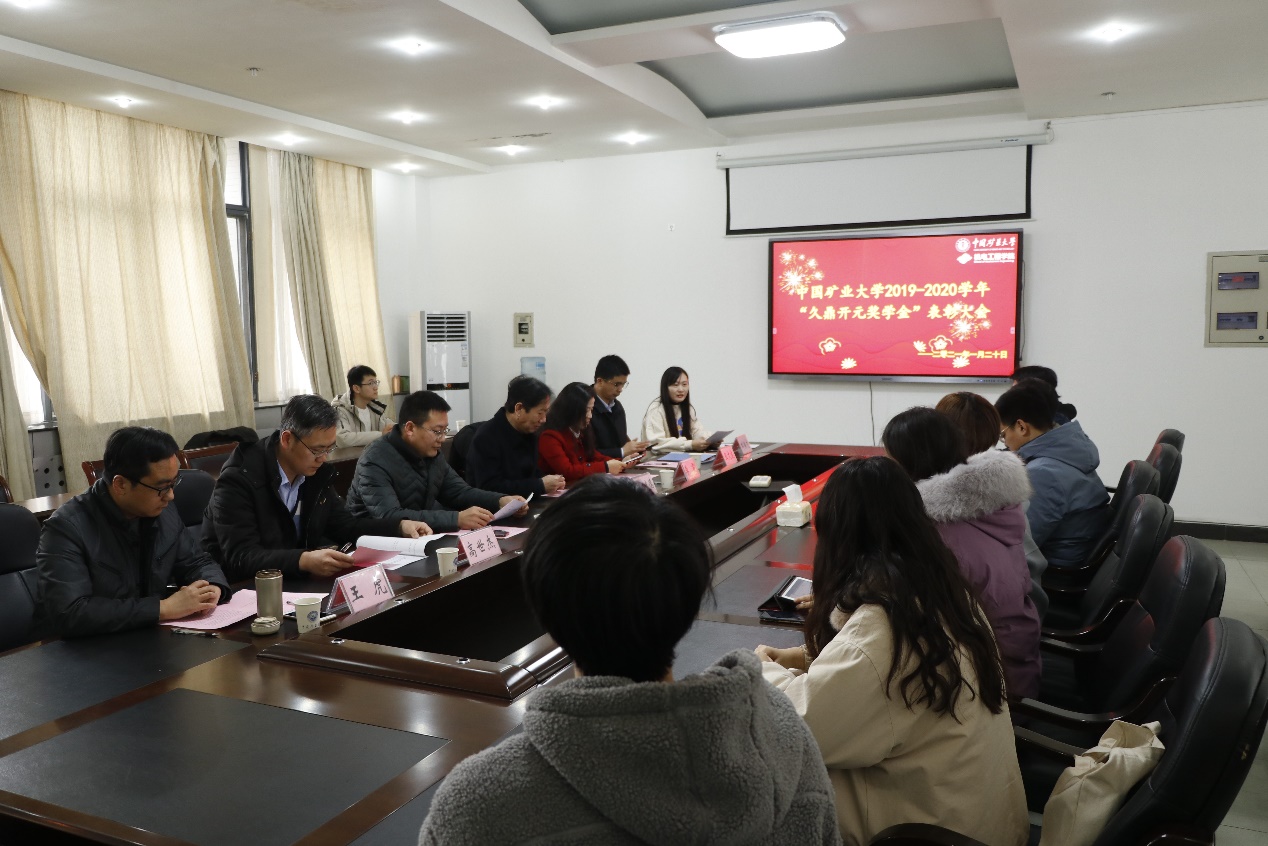 1月20日上午,污污漫画 “久鼎开元奖学金”颁奖仪式在污污漫画 A501会议室举行。山东久鼎开元煤矿机械有限公司总经理张建德先生出席颁奖仪式。对外合作与发展处、学生工作处、矿业工程污污漫画 、污污漫画 相关负责人,有关污污漫画 辅导员和获奖学生代表参加了仪式。仪式由污污漫画 学生工作办公室主任邓燕飞主持。