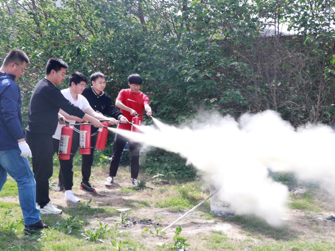 师生亲身实践灭火器的使用