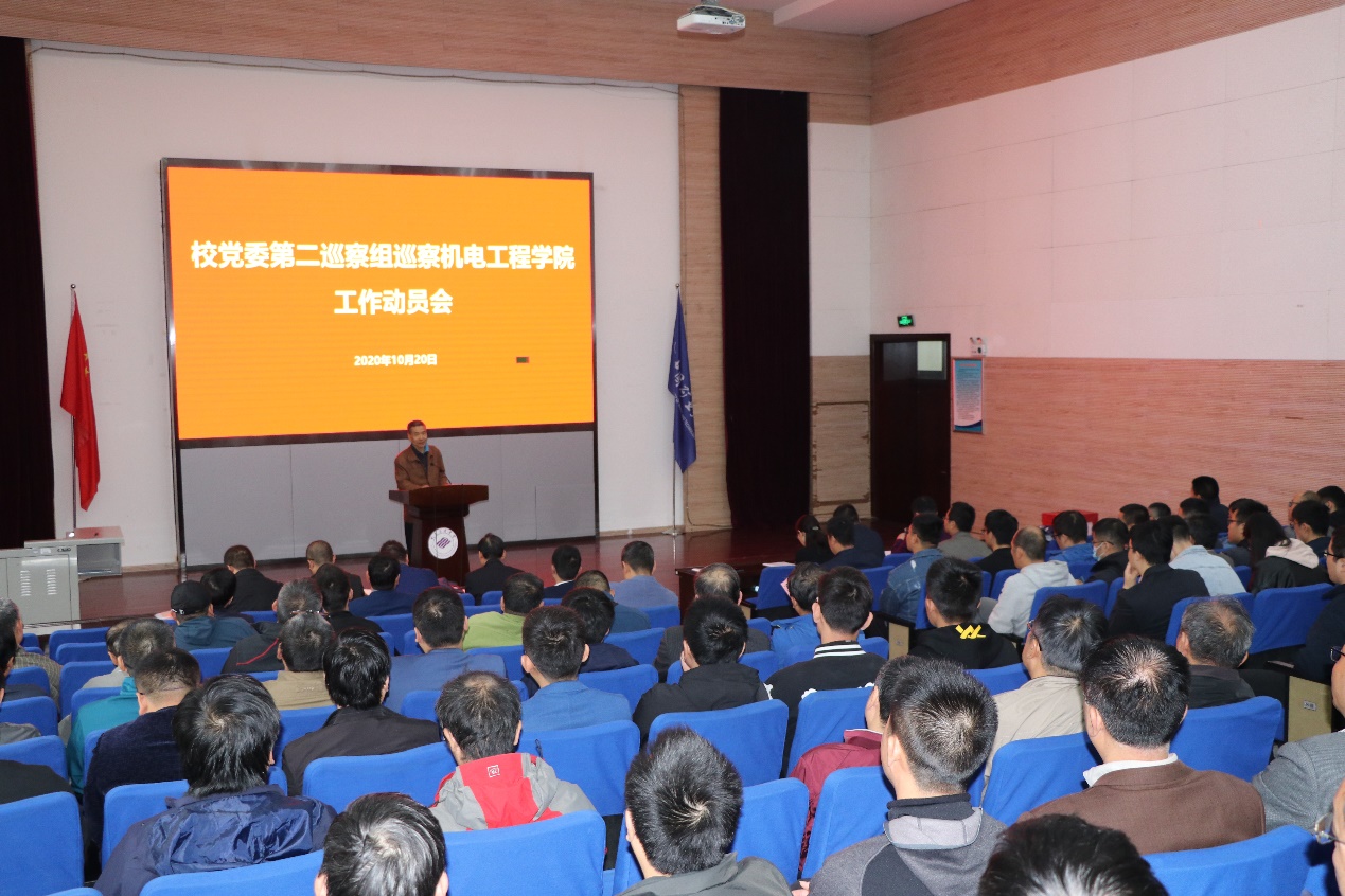 10月20日下午,校党委第二巡察组巡察污污漫画 党委工作动员会在机电污污漫画 报告厅召开。校党委副书记、纪委书记付恒升,校党委第二巡察组组长潘盘甫及巡察组校内成员出席会议,动员会由机电污污漫画 院长王忠宾主持。