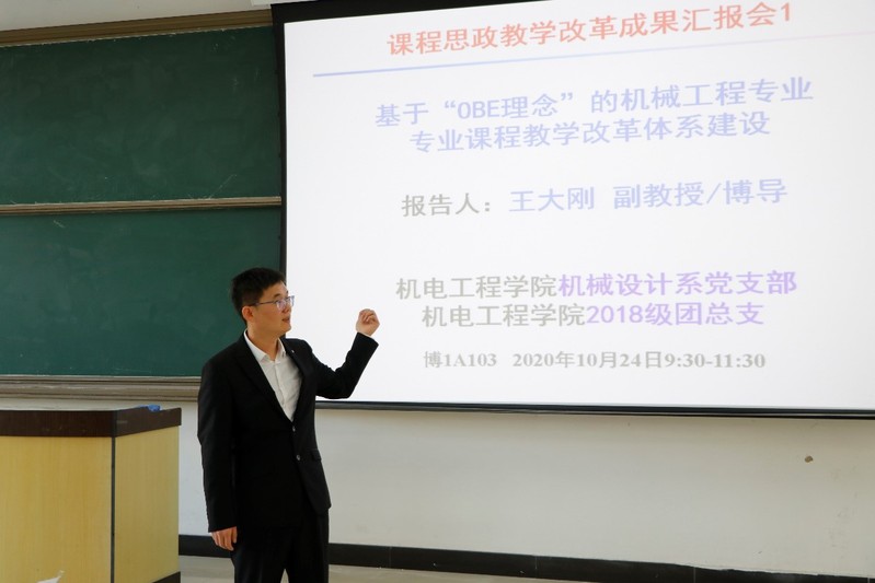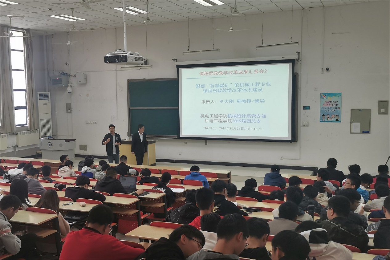 为全面贯彻落实全国高校思想政治工作会议精神,推进高校课程思想政治建设,落实立德树人、全面提高人才培养质量的任务,10月24日,污污漫画 机械设计系党支部、污污漫画 2018级团总支在博学一号楼A103、博学二号楼C201教室分别举办了专业课程思政教学改革成果报告会暨素养公开课。本次报告会由污污漫画 王大刚副教授主讲,污污漫画 团委书记梁佳卉,2019级辅导员孟凡成,污污漫画 青马班学员,2018级和2019级本科生代表参加。
