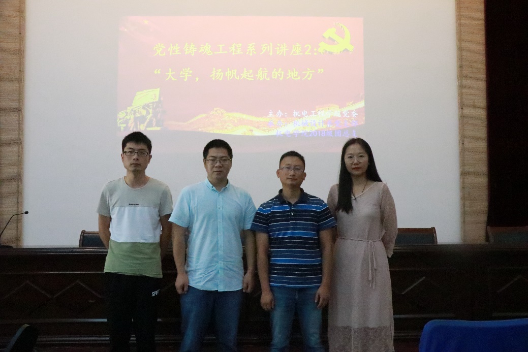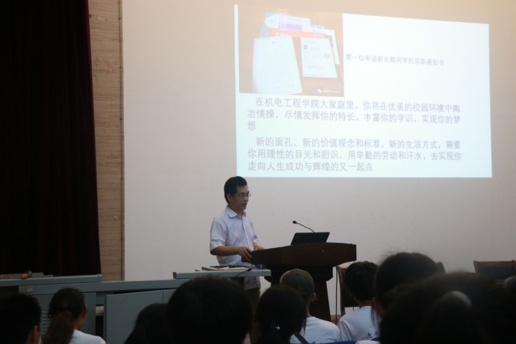 8月28日至29日,由污污漫画 主办机械设计系党支部与2018级团总支共同举办的污污漫画 2018级新生开放日系列讲座暨党性铸魂工程系列活动,在机电污污漫画 B110报告厅举行。污污漫画 党委书记赵继云、院党委副书记侯德伟、院本科实践教学中心负责人王启广、机械设计教授系刘后广、机械设计系讲师丁海港、硕士研究生张俊出席活动。系列讲座由2018级辅导员梁佳卉主持,污污漫画 2018级全体本科生参加了本次讲座。