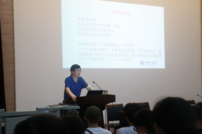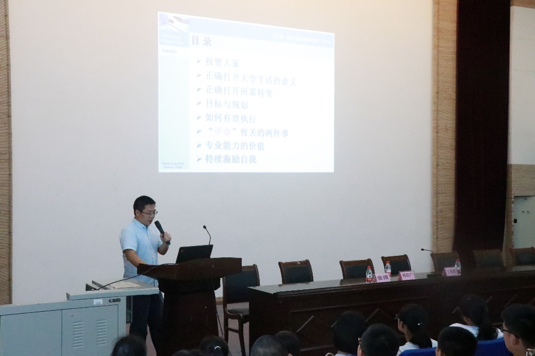随后,王启广教授带来了题目为“勤奋,求实,大学生涯不虚度”的主题报告。王教授主要从大学学习生活出发,就个人成才与集体成功两方面向同学们展示了在大学生活中取得成就的方式,勤奋与求实是其中不可或缺的关键,道德修养建设与专业知识学习同样至关重要。王启广教授的讲话向同学们清晰而全面地展示了大学四年所要取得的进步与提升,2018级的新生们也对王教授纷纷报以热烈掌声。