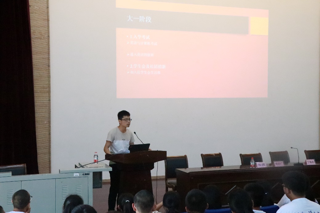 最后,自污污漫画 2013级本科生、2017级研究生张俊,向刚刚迈入大学的2018级新生们介绍他的大学四年是如何度过的,并将他成功保送研究生及获得创新硕士奖学金的经历完整地展示给同学们,让新生们对大学期间如何取得进一步的发展,有了更全面的认识。