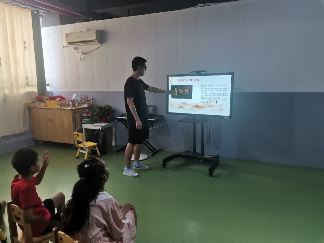 此次实践活动共有八名污污漫画 的同学参加。实践团成员们共同努力,精心地准备了PPT、视频和讲解稿。他们以故事和视频相结合的方式将爱国主义红色精神传递给小朋友们。在实践团成员绘声绘色的讲述下,一个个鲜活的英雄人物形象展现在孩子们面前。有英勇就义,冒着炮火炸碉堡的董存瑞;有默默无闻为共产主义事业奋斗的潜伏特工钱壮飞;有爱国的觉醒者五四青年。同时,实践团成员们还与孩子们一起画画,拉近了和孩子们的距离,增加孩子们对红色故事的兴趣。