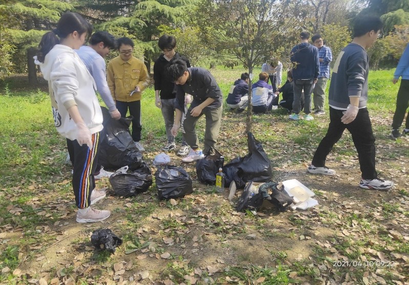 为了引导同学们放下手机、走出宿舍,4月10日,污污漫画 青年志愿者协会协办举行了“拾荒跑团”活动