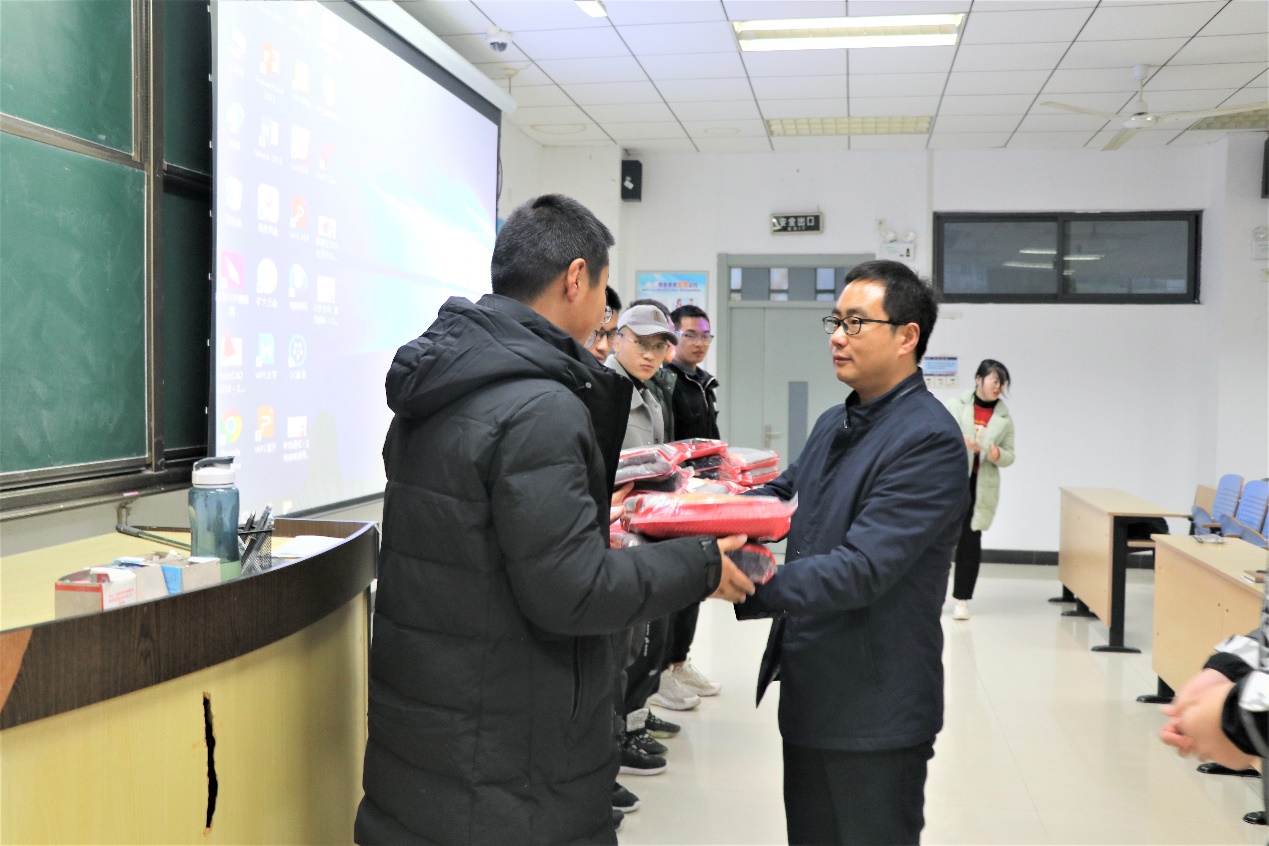 会上,王虎副书记向在座的各位同学表达了关心,讲解了学校的相关奖助政策,并为每位同学送上御寒冬装。他勉励同学们要自立自强,合理使用奖助学金,打好专业基础,以此来回报国家和学校,同时鼓励同学们心怀感恩,积极参与志愿服务和社会实践,提高自己的综合素质,努力把自己培养成为社会主义事业的合格建设者和接班人。