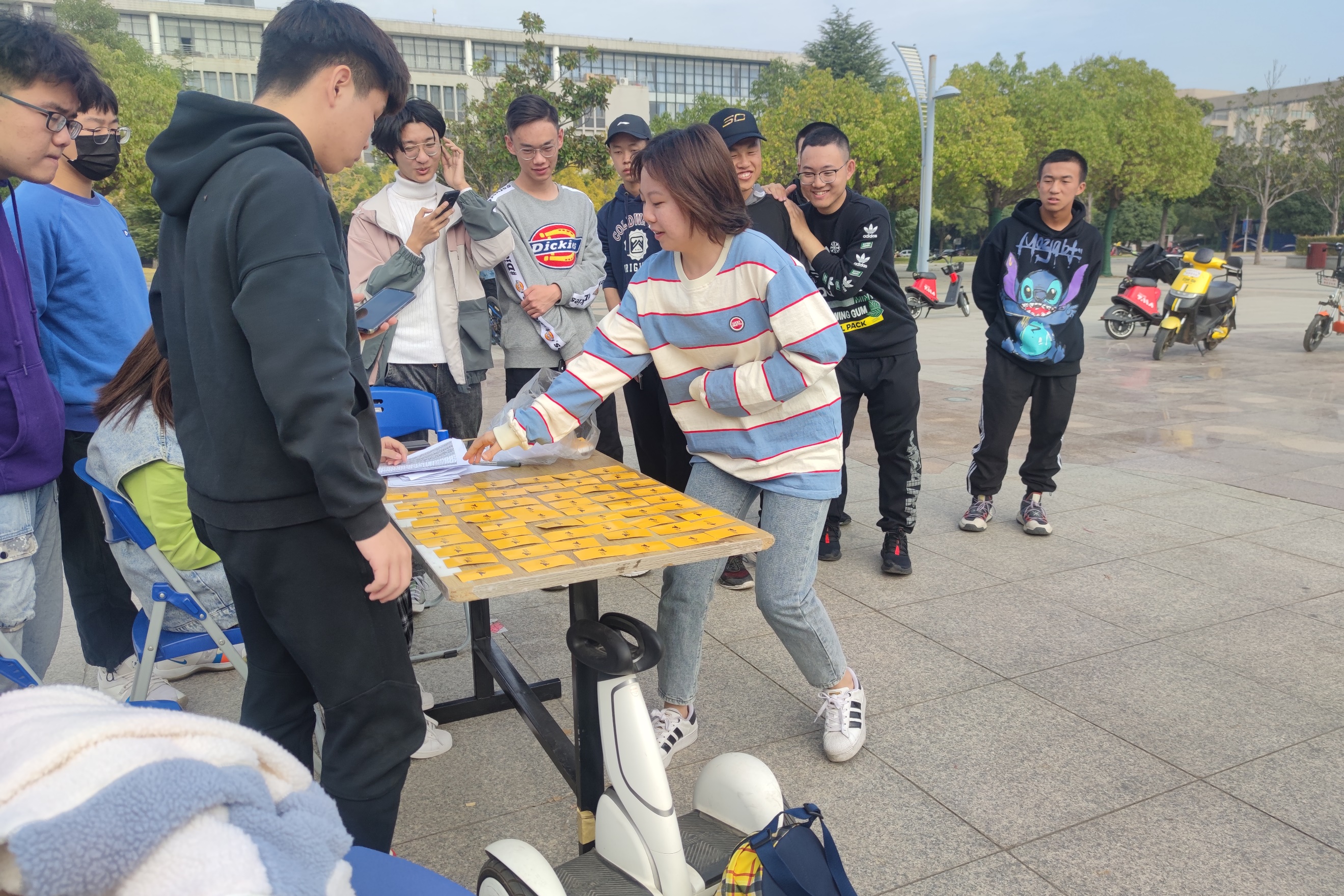 本次活动面向全体在校学生,并且以四人为一组的团队形式报名参与。所有的参赛团队在开幕式结束后可获得自己小组的“出发卡”,队伍将根据自己“出发卡”上的指示先后前往四个不同的地点,找到任务点进行游戏任务。通关该地点的游戏任务后,工作人员将会统计游戏完成所用的时间并在该小队的卡片上盖章,表明此队伍获得了该任务点的“通关卡”。当队伍收集完四个任务点的通关卡后,前往指定位置将卡片交给服务点处的工作人员。活动结束后,工作人员将会对所有的参赛队伍完成四个游戏所用的总时间进行统计汇总,并根据各个参赛团队完成游戏的时间长短,确定最终的获奖名单。