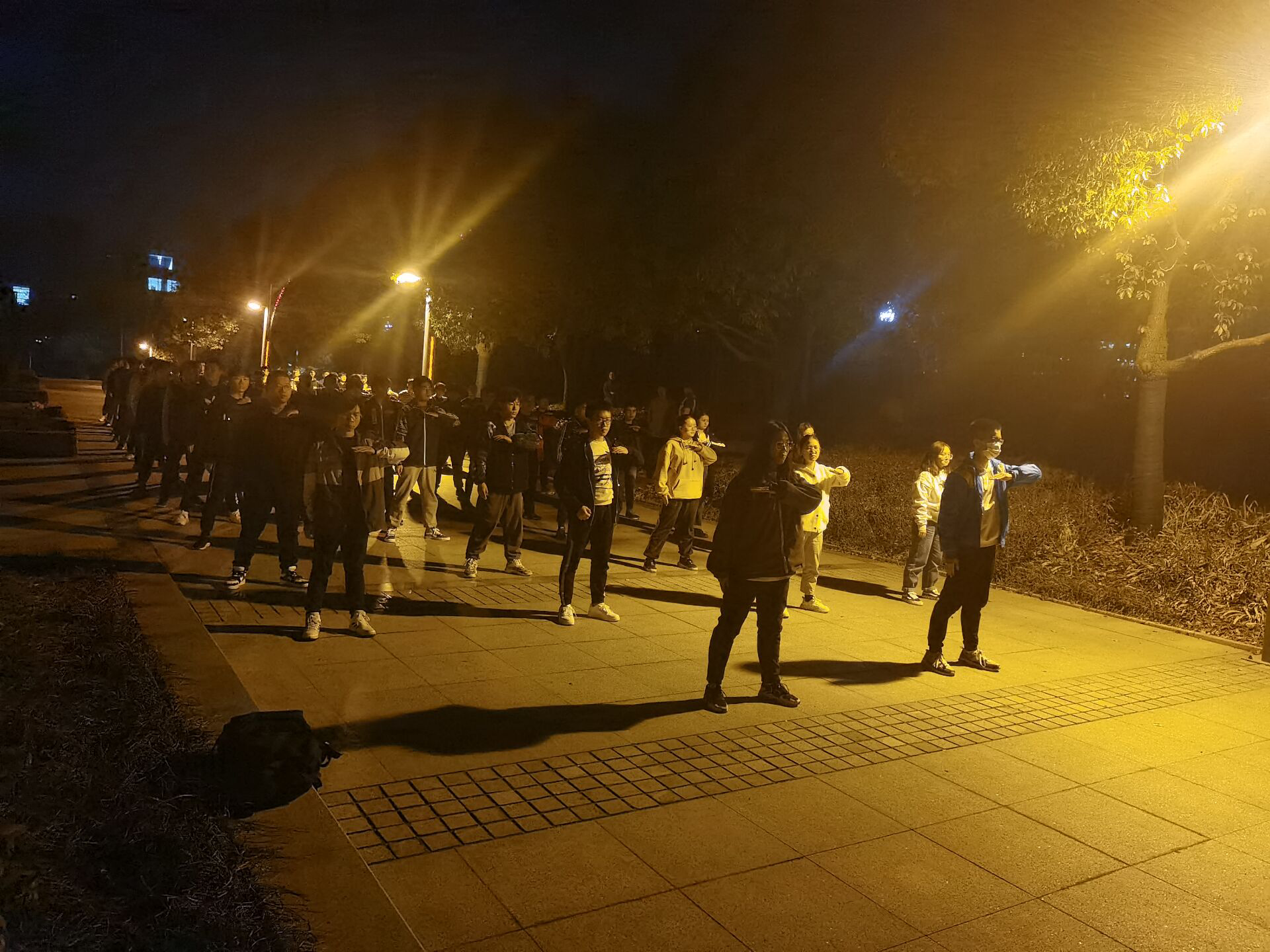 夜幕降临,冷风迎面袭来,但同学们依然准时来到集合地点进行训练。首先在教练的带领下,同学们认真地做了热身运动,温习了所学过的体操内容。伴随着音乐节拍声,同学们积极地练习学过的动作,反复训练,每一个转身、跳跃都力求做到整齐划一。纵使冬夜寒风凛冽,却依然阻挡不住同学们的热情。每一位同学都在认真刻苦的训练,追求卓越,超越自我,展现出了机电学子勤奋刻苦的态度,彰显着青春的活力。广播体操训练是次难得的磨练自己的机会,大家一起为一个共同的目标而努力,广播体操正式表演的时刻,所有辛勤汗水浇灌的果实必将彻底绽放。