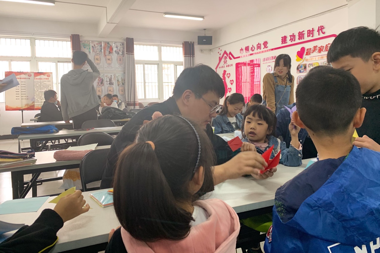 本次小课堂招生范围为一年级至六年级的小学生,以辅导学习和培养小朋友兴趣爱好为主要活动内容。上午九点,周末小课堂正式开课,小朋友陆陆续续地进入课堂。参加志愿活动的同学每人负责一至两名小朋友,主要是辅导小朋友的功课。在休息期间,小朋友进入休息间看书放松,负责折纸授课的同学准备上课需要的材料。休息过后,志愿者教小朋友一些简单的折纸手工。小课堂结束后,小朋友们有序离开课堂,与志愿者挥手告别。
