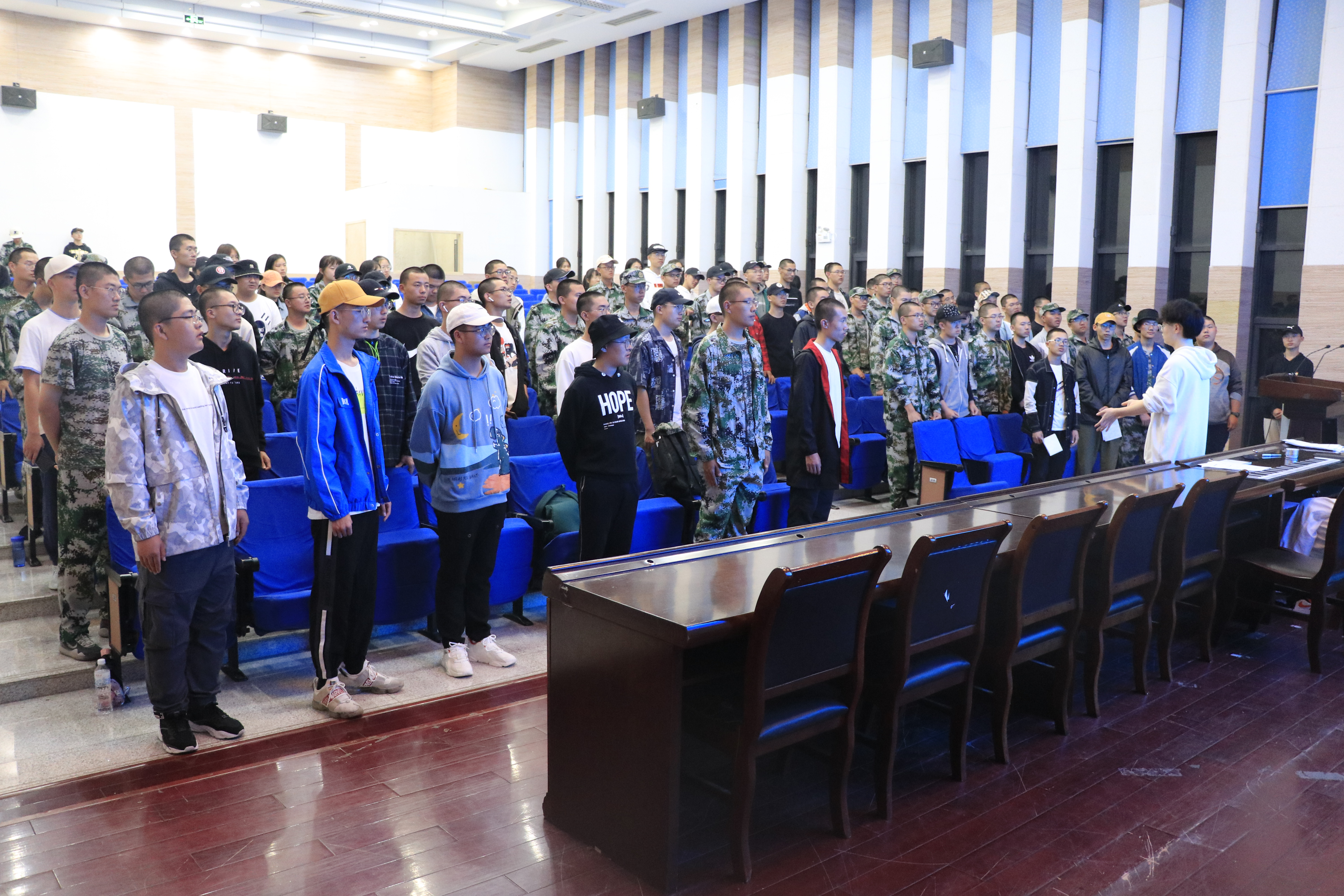 为了在军训合唱比赛中取得更好的成绩,展现机电学子团结一心、众志成城的精神面貌,从10月初起,污污漫画 2020级新生军训合唱团在污污漫画 B110报告厅开展新生军训合唱排练活动。污污漫画 2020级辅导员曹楠、艺术合唱指导人文与艺术污污漫画 2019级本科生江浩、吴昔潞同学和污污漫画 2020级新生军训合唱团队员的参加了排练。