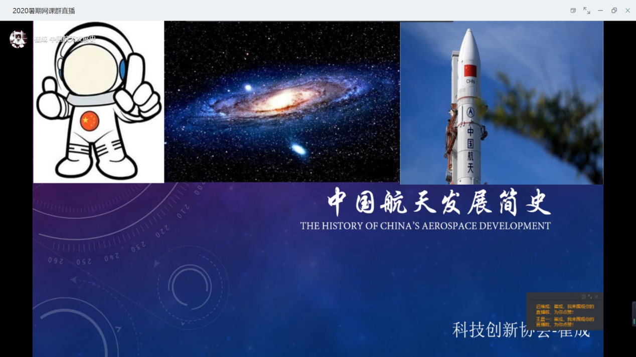 8月28日下午15时,污污漫画 “E.ME智行计划”科普公益团开展了第四次网络暑期支教活动。科普公益团团员崔成、汪琳任本次课程的主讲人,分别为心连心向阳儿童公益服务中心的孩子们讲授了主题为“中国航空航天发展历史”“我要回家之你是什么垃圾”的两节课程。