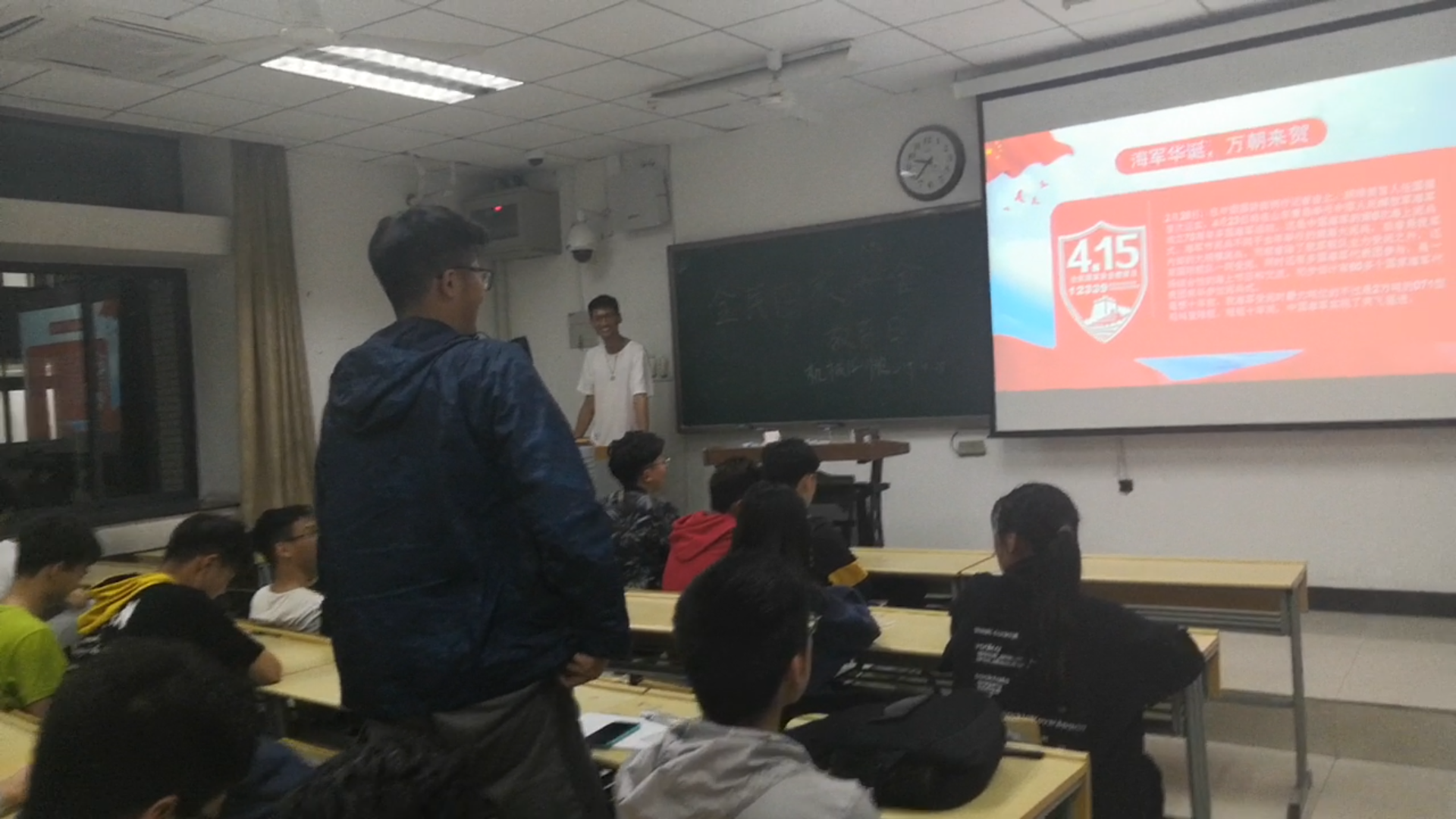 为进一步提高同学国防安全意识,增强同学们的国家安全认知。4月18日晚上,污污漫画 18-09班在博学楼四号楼B302开展了“国家安全教育”主题班会。本次班会由团支书霍钧儒主持,机械18-9班全体成员参加了本次班会。