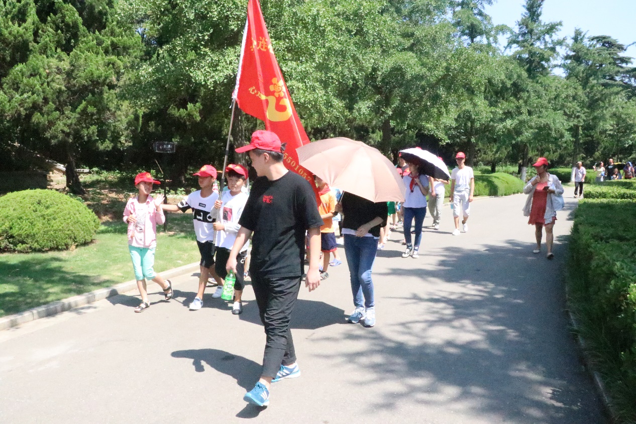 上午9时许,志愿者和孩子们乘着灿烂的阳光和阵阵微风出发了。在一个小时的车程后,志愿者和孩子们顺利到达了徐州市淮海战役纪念塔,开始进行爱国主义实践教育。